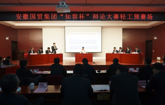 12月23日下午,由國貿(mào)集團(tuán)團(tuán)委主辦的“知容杯”辯論大賽在輕工賽區(qū)火熱開賽。本次大賽由安糧、技術(shù)、輕工、服裝、安徽進(jìn)出口、華安、工藝7家單位組隊(duì)參加比賽,其中我司派出2支代表隊(duì)參賽,安糧一隊(duì)由新能源劉毅、安糧國際彭震、安糧期貨高軍偉、安糧實(shí)業(yè)馮婷梅組成,安糧二隊(duì)隊(duì)員為合肥建工許亞鋒、龐濤、許諾、朱潤,安糧集團(tuán)總經(jīng)理助理周洪擔(dān)任比賽評(píng)委。