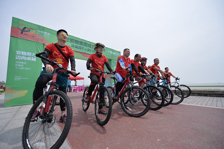 為慶祝安糧集團成立40周年,2016年4月22-23日,為期兩天、歷程160公里的安糧集團環(huán)巢湖千人毅行接力活動在美麗的巢湖之濱熱情上演。本次活動以“安糧聚力,邁向卓越”為主題,共有近千人參與,不僅有公司系統(tǒng)在職員工和退休老領(lǐng)導、老同志,國貿(mào)集團范陽董事長還帶領(lǐng)國貿(mào)集團的20多名同仁前來助陣。