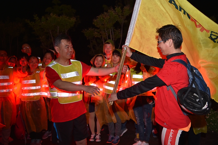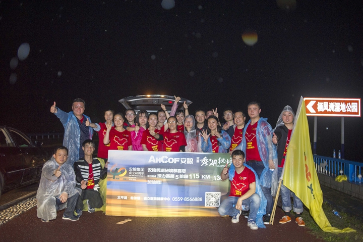 頂烈日出發(fā),迎風雨歸來, 不經(jīng)歷風雨,怎能見彩虹!本次活動旨在通過比拼耐力、團隊協(xié)作的戶外青春毅行方式,感懷安糧集團四十年艱苦發(fā)展歷程,詮釋和回顧安糧集團四十年坎坷發(fā)展之路!毅行隊伍匯聚成一股紅色浪潮,浩浩蕩蕩,與春潮共涌,隨鷗鷺爭翔。或漫步,或疾走,徒步者三五相攜,騎行者如離弦之箭。追憶往昔,暢想未來,個個喜笑顏開,人人意氣風發(fā)。披朝露,追夕照,抵烈日,沐風雨。攜手前行有春光作伴,夜幕沉沉我們從不孤獨,火熱的太陽燃燒出安糧人的激情,突來的風雨洗禮出我們的團結(jié)和堅毅。毅行隊伍一路向前,徒步騎行從容接力,通過24小時的一路堅持,穿過環(huán)巢一市三縣,不斷向目標邁進,向勝利進發(fā)!