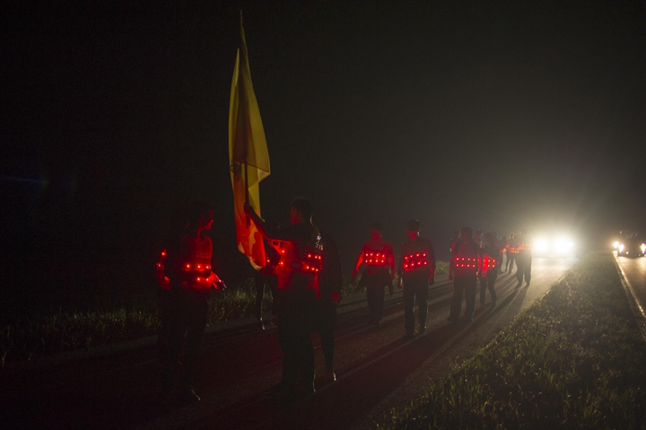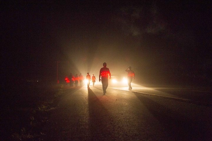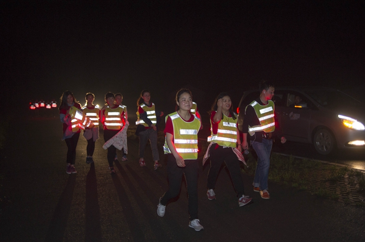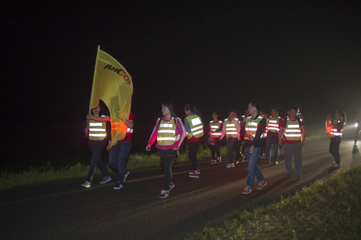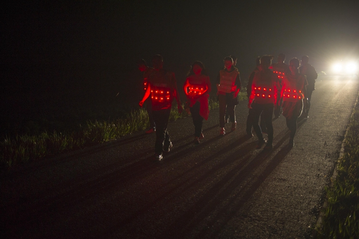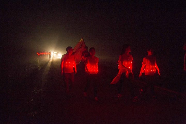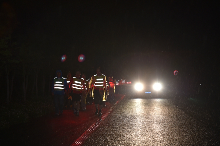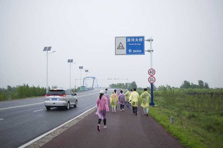 活動分徒步、騎行兩個項目,以濱湖新區(qū)渡江戰(zhàn)役紀念館為起訖點,自西向東、環(huán)巢而行,沿途先后歷經(jīng)肥東縣、巢湖市、廬江縣、肥西縣、濱湖新區(qū)。第一階段徒步毅行由解放碑出發(fā),行程10公里,參與人數(shù)700余人,12點前后陸續(xù)抵達半島碼頭接力點。第二階段全程150公里,由兩支自行車騎行大隊與四支徒步大隊組成。在第一階段隊伍全部抵達后,第二階段隊伍中午12:30騎行隊伍出發(fā),按照45km/棒開始接力。22日晚7時許,騎行隊伍抵達預定地點。19:30,徒步隊伍接力開始出發(fā),挑戰(zhàn)夜行,每15公里交接一棒。22日夜的巢湖岸邊,夜黑如墨,風大雨急,氣溫驟降,四組徒步隊員們頂風冒雨,不畏艱難、相攜相伴,堅毅前行,如時完成!