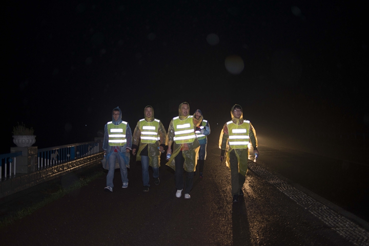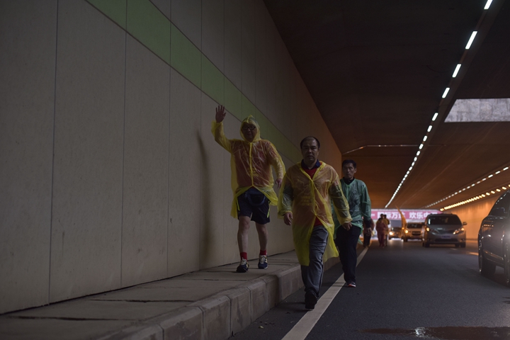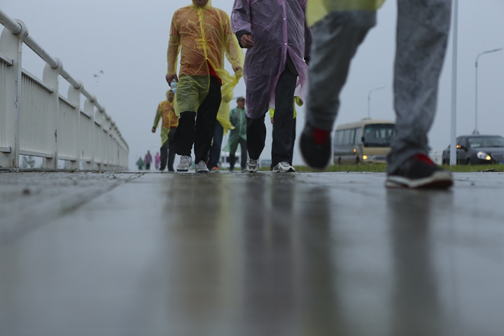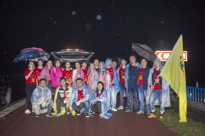 23日風雨交加的清晨,公司領(lǐng)導班子抵達最后一階段起點,與徒步隊伍一起向目的地發(fā)起沖刺!9:30,最后一只徒步隊伍沖出雨幕,勝利抵達紀念碑終點站。