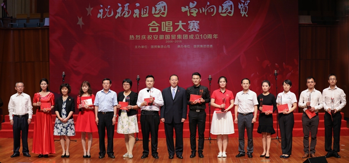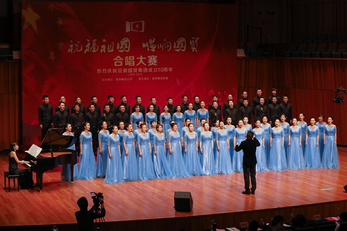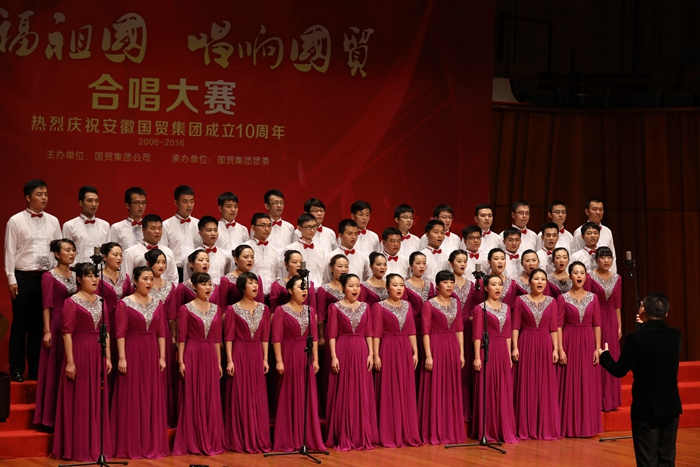 2016年9月28日,為慶祝中華人民共和國(guó)67周年華誕、紀(jì)念國(guó)貿(mào)集團(tuán)成立10周年,由國(guó)貿(mào)集團(tuán)主辦的“祝福祖國(guó),唱響國(guó)貿(mào)”合唱大賽在合肥大劇院隆重舉行。本次合唱比賽共有來自國(guó)貿(mào)系統(tǒng)的11支代表隊(duì)參加,其中安糧集團(tuán)派出兩支代表隊(duì),分別是由集團(tuán)本部、控股及控股除建工以外其他下屬企業(yè)員工組成的“糧安天下”合唱團(tuán)和由合肥建工組建的“基業(yè)長(zhǎng)青”合唱團(tuán)。經(jīng)過激烈的角逐,“糧安天下”合唱團(tuán)最終一舉奪魁,“基業(yè)長(zhǎng)青”合唱團(tuán)獲得三等獎(jiǎng)。