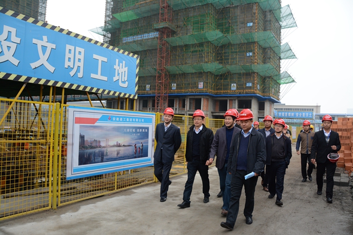 2016年11月17日下午,國貿(mào)集團董事、副總經(jīng)理程保銀一行到安糧中心項目檢查安全生產(chǎn)情況,并對安全生產(chǎn)提出了指導(dǎo)意見。安糧集團黨委副書記、安糧置地董事長孫毅等陪同檢查。