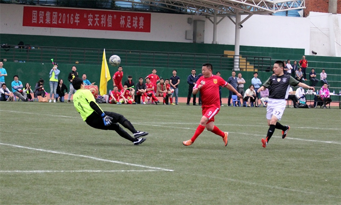 2016年5月13日,國貿(mào)集團2016年“安天利信杯”足球賽在合肥市體育運動學(xué)校拉開戰(zhàn)幕,共有來自國貿(mào)系統(tǒng)的7支代表隊參加角逐。安糧集團足球隊在首輪與華安公司代表隊的對話中取得開門紅,以6:2的比分輕取對手,在全取3分的同時,憑借凈勝球優(yōu)勢領(lǐng)跑首輪積分榜。