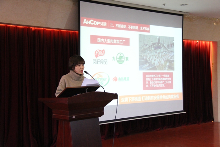 安糧實業(yè)肉禽三部經(jīng)理劉玉蓮作交流發(fā)言