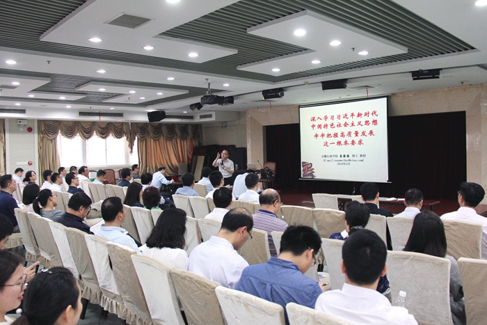 本次報(bào)告會(huì)邀請了安徽省行政學(xué)院黨委委員、副院長袁維海教授主講。袁教授圍繞新時(shí)代、新征程、新矛盾、新方略、新舉措、新要求六個(gè)方面的內(nèi)容,深入闡釋了習(xí)近平新時(shí)代中國特色社會(huì)主義思想的深刻內(nèi)涵。他通過用大量實(shí)例和經(jīng)濟(jì)數(shù)據(jù)作支撐,結(jié)合中國經(jīng)濟(jì)已從高速增長轉(zhuǎn)向高質(zhì)量發(fā)展并正處于轉(zhuǎn)變發(fā)展方式、優(yōu)化經(jīng)濟(jì)結(jié)構(gòu)、轉(zhuǎn)換增長動(dòng)力的攻關(guān)期,全面解讀了黨的十九大報(bào)告。其中,對(duì)深刻領(lǐng)會(huì)新常態(tài)時(shí)代這個(gè)發(fā)展邏輯進(jìn)行了系統(tǒng)闡述和深入分析,觀點(diǎn)獨(dú)到,給人啟迪,對(duì)各單位進(jìn)一步深入貫徹落實(shí)黨的十九大精神,推動(dòng)安糧集團(tuán)改革發(fā)展起到了積極作用。