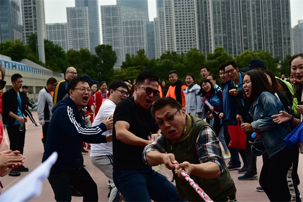 上午9點(diǎn)半,在簡短的開幕式后,別開生面的競賽項(xiàng)目陸續(xù)登場,八支隊(duì)伍各顯風(fēng)采。五人六足項(xiàng)目首先登場,步伐一致是該項(xiàng)目的制勝法寶,東倒西歪的令人捧腹,中途摔倒的令人嘆息,安糧地產(chǎn)代表隊(duì)最終勇拔頭籌;摸石過河考驗(yàn)手足協(xié)調(diào),安糧期貨熊青寶快速突圍,棋高一著;跳大繩的關(guān)鍵是快和穩(wěn),安糧國際一鼓作氣,幾乎零失誤,遙遙領(lǐng)先;踢毽子比賽靈巧之中顯真功夫,集團(tuán)本部方嘉亮身手不凡,技?jí)喝河ⅲ蛔孕熊嚫偮?,平靜中見驚奇,合肥建工黃玉璟獨(dú)樹一幟;托球接力跑,一考凌波微步,二比掌上功夫,安糧實(shí)業(yè)笑到最后;呼啦圈競走難在“左右互博”,安糧小貸張媛媛最具神通;拔河項(xiàng)目是力量的較量,建工一隊(duì)勢如犇牛,盡展雄風(fēng);滾鐵環(huán)項(xiàng)目,作為童年的回憶,也漸漸成為回憶中的項(xiàng)目,安糧控股潘冬生副總裁帶大家領(lǐng)略了老前輩的少年風(fēng)采;50米折返跑接力作為本屆比賽的壓軸大戲,最為矚目,集團(tuán)聯(lián)隊(duì)一騎絕塵!十項(xiàng)比賽結(jié)束,“有趣”的一天也臨近尾聲,8支隊(duì)伍各領(lǐng)風(fēng)騷,獎(jiǎng)牌背后,團(tuán)結(jié)奮進(jìn)是制勝的終極秘訣。
