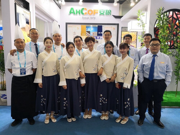 展會上,安糧實業(yè)的展臺延續(xù)去年頗受好評的徽派風格,獨具一格的展位設(shè)計,身穿漢服的安糧姑娘“紅唇粉肌,青衣羅衫”穿梭在徽派建筑之間,讓人眼前一亮。