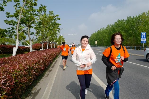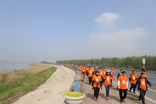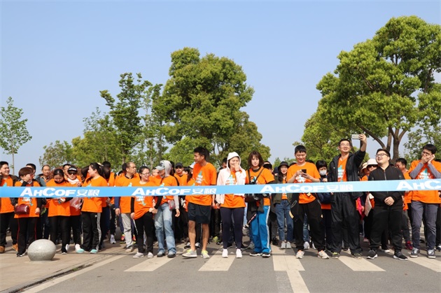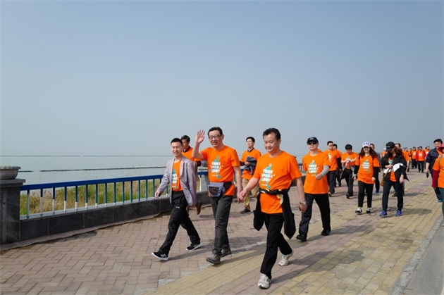 一路上,統(tǒng)一著裝的毅行隊伍如一股橙色的春潮,激蕩在碧波萬頃、楊柳接岸的巢湖之濱。伴著融融春日,吹著習(xí)習(xí)微風(fēng),毅行隊伍一邊暢享行走的樂趣,一邊欣賞大美巢湖的秀麗春色,一邊笑談工作或生活的點滴。上午10點5分,來自安糧實業(yè)的薛寶第一個沖破終點線,隨后,其他毅行者也陸續(xù)抵達終點。大家在留言墻上簽名并合影留念,一張張笑臉洋溢著成功的喜悅。