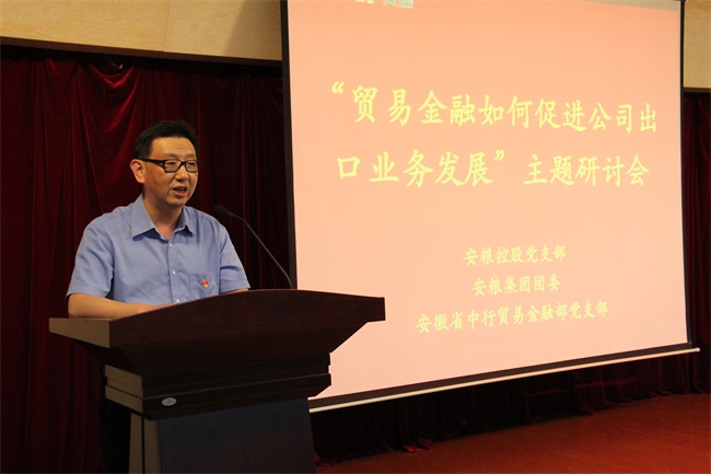 為強化企業(yè)黨建,加強黨團建設結合,合力助推公司高質量發(fā)展,在公司2019年經營指導思想引領下,2019年5月28日下午,安糧控股黨支部與安糧集團團委聯合安徽省中行貿易金融部黨支部在盛安廣場五樓多功能廳開展了“貿易金融如何促進公司出口業(yè)務發(fā)展”主題研討會。省中行貿易金融部黨支部書記、總經理何浩,副總經理王光建,安糧集團黨委委員、副總裁、工會主席周洪,安糧控股黨支部書記、國際結算總監(jiān)武義海等出席會議,各相關支部黨員、貿易板塊團員青年及相關業(yè)務人員共六十余人參加。