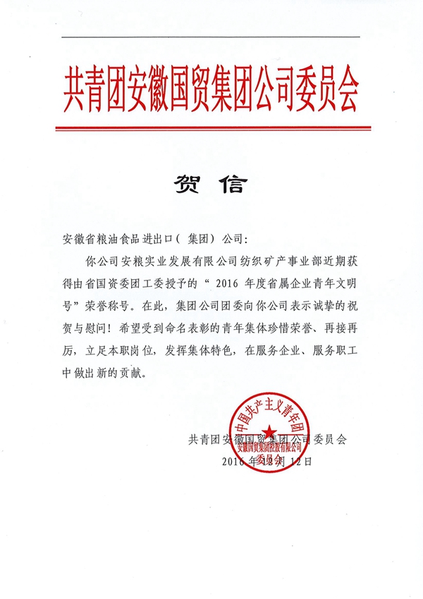 對于小伙伴們來說,家人們做出的犧牲成為了最堅強的后盾,加上公司領導的關懷和鼓勵,給了整個團隊巨大的拼搏動力,他們擼起袖子加油干,全心全意撲在工作上,最近流行的“996”對他們來說早就是家常便飯,即便是周日也隨時待命。在大家的共同努力下,短短幾年的時間,紡織品的年出口額從金融危機后的一千多萬美元上升到目前將近五千萬美元。2016年,安糧實業(yè)紡織品團隊被省國資委團工委評為“省屬企業(yè)青年文明號”,這也是安糧系統(tǒng)首個獲此殊榮的集體,辛勤的付出終于結(jié)出累累碩果。