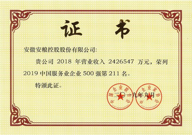 安糧控股位列2019中國(guó)服務(wù)業(yè)企業(yè)500強(qiáng)第211位