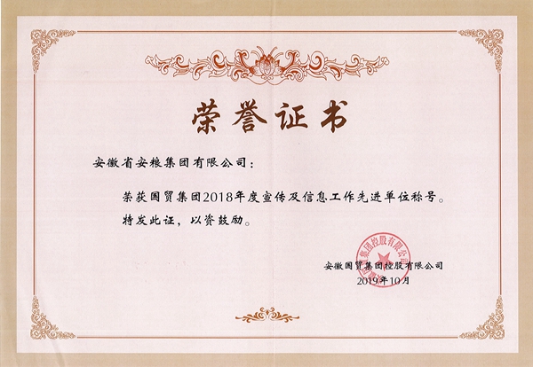 10月11日至12日,國貿(mào)集團(tuán)舉辦了2019年宣傳思想與意識(shí)形態(tài)工作培訓(xùn),并對(duì)2018年度宣傳及信息工作先進(jìn)單位及優(yōu)秀通訊員進(jìn)行表彰。安糧集團(tuán)榮獲“國貿(mào)集團(tuán)2018年度宣傳及信息工作先進(jìn)單位”稱號(hào),安糧集團(tuán)方嘉亮、朱青榮獲“國貿(mào)集團(tuán)2018年度優(yōu)秀通訊員”稱號(hào)。10月15日,在海螺集團(tuán)舉辦的2019年宣傳思想與意識(shí)形態(tài)工作培訓(xùn)上,方嘉亮榮獲“海螺集團(tuán)2018年度優(yōu)秀通訊員”稱號(hào),安糧國際徐坤友、安糧期貨龔悅榮獲海螺集團(tuán)“禮贊新中國 幸福新海螺”主題征文優(yōu)秀獎(jiǎng)。