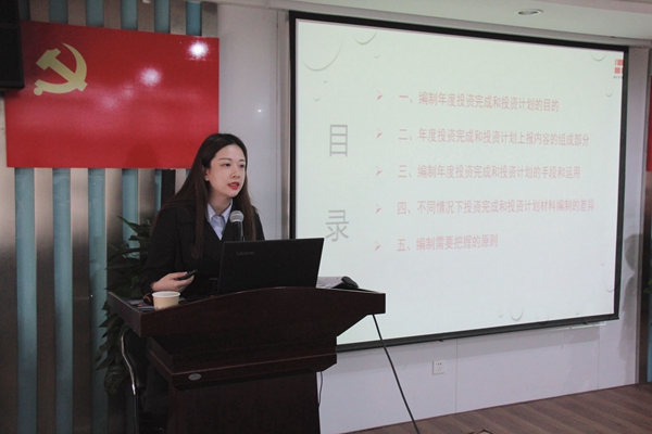 培訓(xùn)中,國貿(mào)集團(tuán)投資發(fā)展部鄭羽淇就年度投資完成和投資計劃的編制工作進(jìn)行詳細(xì)說明,對投資完成和投資計劃的目的、組成內(nèi)容、準(zhǔn)則和依據(jù)、不同類型項目編制差異及編制原則進(jìn)行系統(tǒng)闡述,并對編制工作中出現(xiàn)的新變化進(jìn)行強(qiáng)調(diào)。同時,針對投資計劃重點工作、可行性研究報告在編制過程中出現(xiàn)的實際問題進(jìn)行重點說明,結(jié)合案例就可行性研究報告進(jìn)行具體演示。