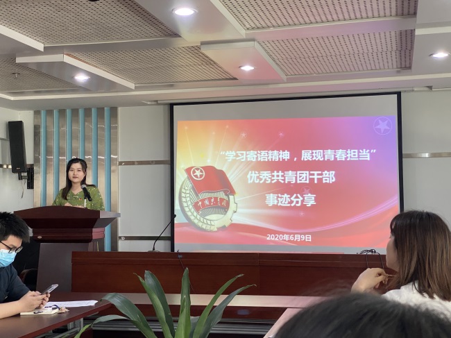 “省屬企業(yè)優(yōu)秀共青團(tuán)干”稱(chēng)號(hào)獲得者、安糧國(guó)際團(tuán)支部副書(shū)記兼組織委員趙夢(mèng)晶同志進(jìn)行優(yōu)秀事跡分享。她結(jié)合在共青團(tuán)工作經(jīng)歷和自身感悟鼓勵(lì)青年團(tuán)員們積極擔(dān)當(dāng),踏實(shí)做事,在團(tuán)員青年中引起了強(qiáng)烈的反響和共鳴。隨后與會(huì)人員共同觀看了由安糧青年員工精心編排參演的慶祝新中國(guó)成立70周年、五四運(yùn)動(dòng)100周年主題情景劇《使命的接力》。