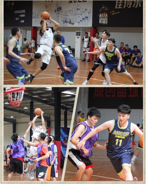 簡短的開幕式后,隨著裁判員的第一聲哨響,比賽正式打響。根據(jù)賽制,第一輪11支代表隊分A、B兩組進行組內(nèi)單循環(huán)比拼,兩組積分前兩名的四支隊伍進入半決賽。分組對抗中,25場比賽輪番上演,各支隊伍盡展實力:流暢默契的擋拆配合,不知疲倦的掩護跑位,頑強的防守,靈動的過人,每一次卡位與籃板爭搶中的肌肉碰撞,每一次進攻得分后的縱情歡呼,一次次引發(fā)現(xiàn)場觀戰(zhàn)同事們的掌聲和喝彩,一次次將比賽現(xiàn)場氣氛推向高潮。銳意拼搏的安糧精神、永不服輸?shù)陌布Z斗志,都在健兒們飛奔的身影和揮灑的汗水中展現(xiàn)的淋漓盡致。