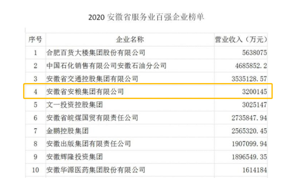 安糧集團(tuán)位列安徽省服務(wù)業(yè)百強企業(yè)第4位