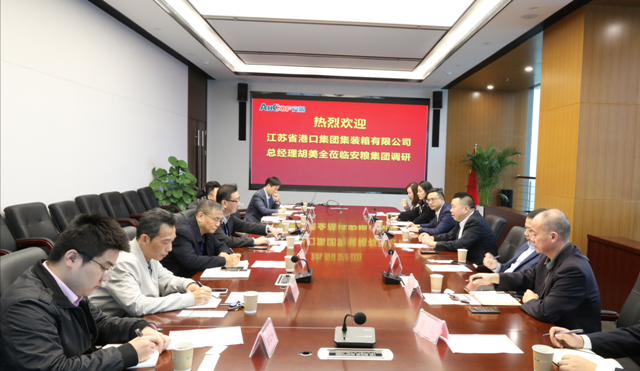 11月4日,江蘇省港口集團集裝箱有限公司總經(jīng)理、太倉港港務(wù)集團董事長胡美全一行到安糧集團調(diào)研。安糧集團黨委委員、副總裁周洪,安糧控股財務(wù)總監(jiān)張來往及相關(guān)部門負責人參加調(diào)研座談會。