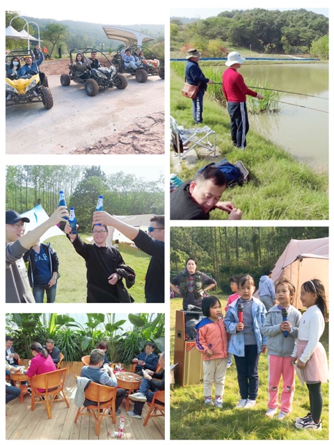 出行當(dāng)天,天氣格外晴朗,久違的燦爛陽(yáng)光一掃連日來(lái)的陰霾。大家沐浴著秋日暖陽(yáng),徜徉在湖邊小路,穿梭于山水之間,一路觀景,一路說(shuō)笑,分享著工作之余親近自然的輕松與愜意。園區(qū)精心準(zhǔn)備了卡丁車(chē)、小火車(chē)、叢林穿越、彩虹滑道、水上泛舟、戶(hù)外垂釣、大鍋灶等休閑項(xiàng)目,午餐后的戶(hù)外帳篷派對(duì)更是別開(kāi)生面。大家在娛樂(lè)互動(dòng)中放松身心、樂(lè)享天趣,拉近彼此距離,增進(jìn)友誼的溫度,并用相機(jī)定格歡樂(lè)的瞬間,短暫的活動(dòng)愉悅了身心,也為更好地工作注入了滿(mǎn)滿(mǎn)的能量。
