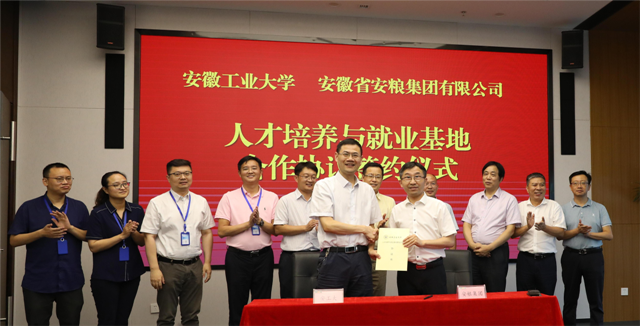 安糧集團(tuán)與安徽工業(yè)大學(xué)舉行人才培養(yǎng)與就業(yè)基地簽約揭牌儀式