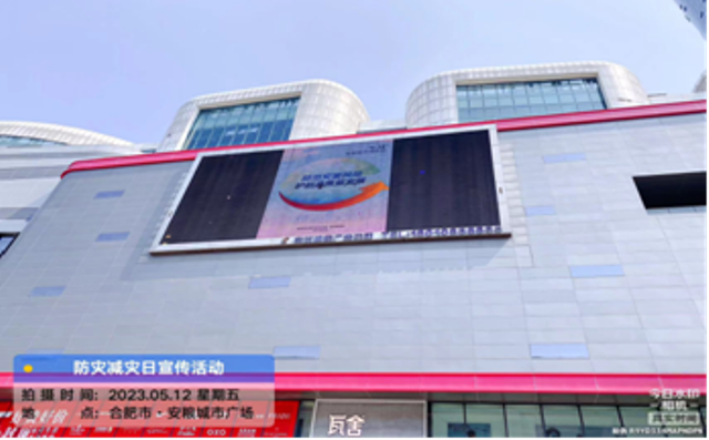 安福公司通過商場外立面廣告大屏滾動播放防災減災宣傳內(nèi)容,并且在公司內(nèi)部開展學習應(yīng)急救援知識培訓。
