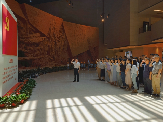 黨員們懷著崇高的敬意,傾聽革命先烈的偉大事跡,瞻仰實(shí)物文獻(xiàn),追憶波瀾壯闊的歷史,感受這場軍民團(tuán)結(jié)一心的偉大勝利和永垂不朽的戰(zhàn)役精神。“渡江戰(zhàn)役的勝利是靠老百姓用小船劃出來的?!绷?xí)近平總書記在2020年考察安徽時(shí)語重心長地說:“任何時(shí)候我們都要不忘初心、牢記使命,都不能忘了人民這個(gè)根,永遠(yuǎn)做忠誠的人民服務(wù)員?!彪S后,安糧實(shí)業(yè)的黨員們面向鮮紅的中國共產(chǎn)黨黨旗,高舉右拳,重溫入黨誓詞,鏗鏘有力的誓言回蕩大廳、激蕩人心,將不變的初心與使命鐫刻于心。
